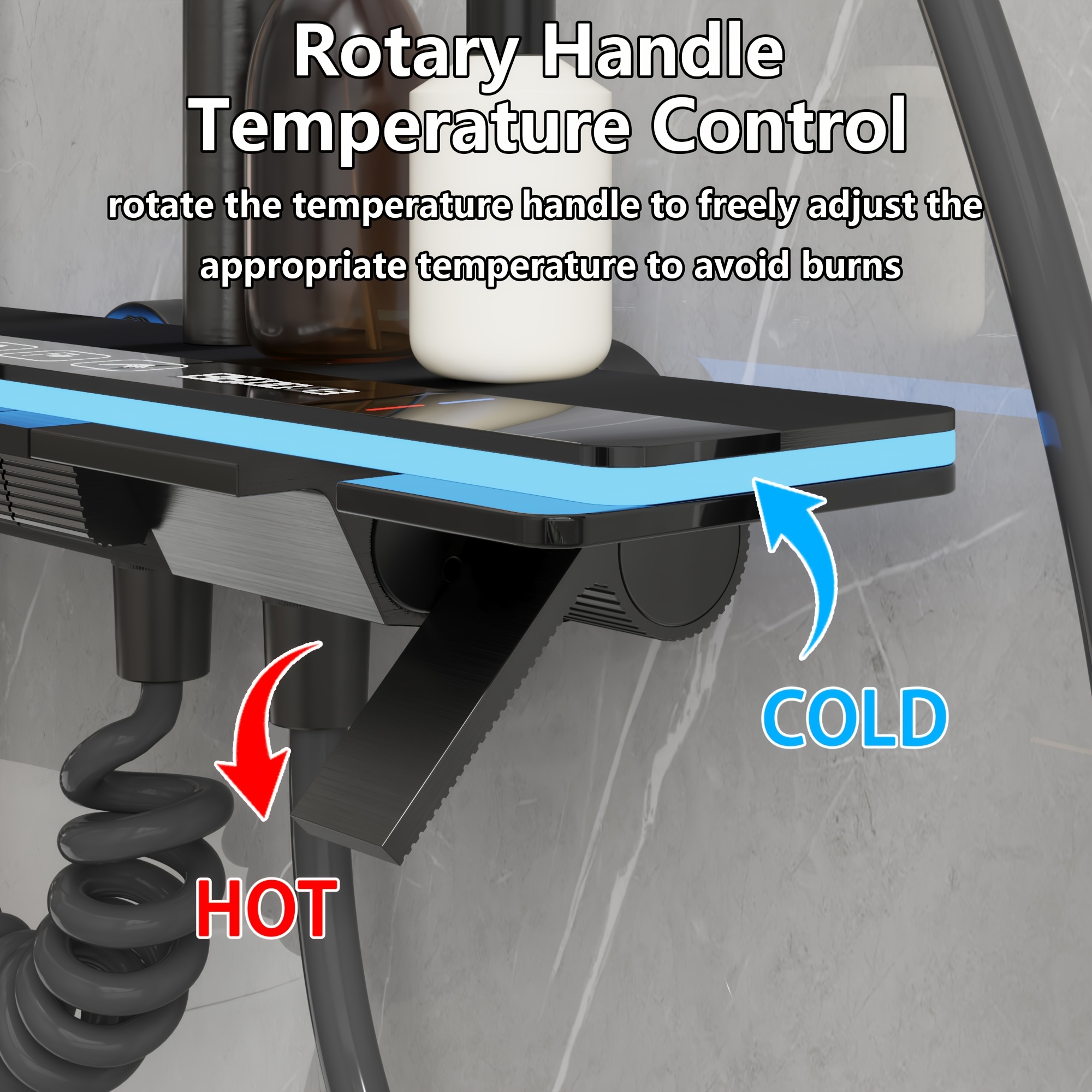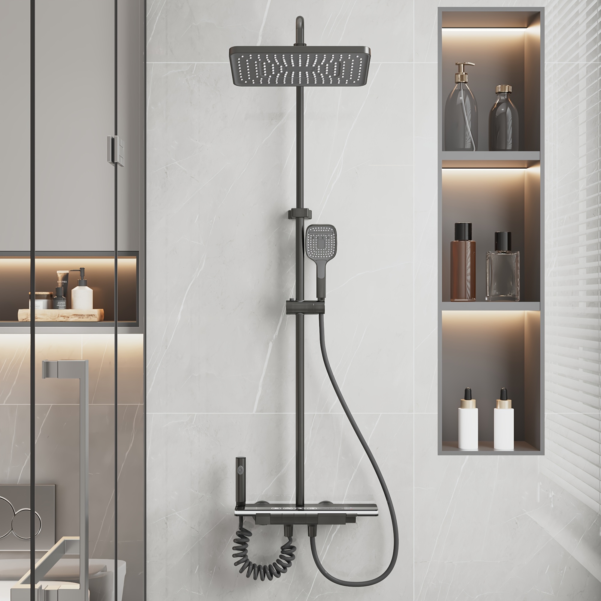 1Set Bathroom Shower System with 11.6'' Rain Showerhead, Hand Shower, Spray Gun And Water Fall Tub Spout, Gray Shower Set, 4-In-1 Shower Faucet Set, Faucet with Cold And Hot Water Mixer, Wall-Mounted Luxurious Exposed Shower Sets