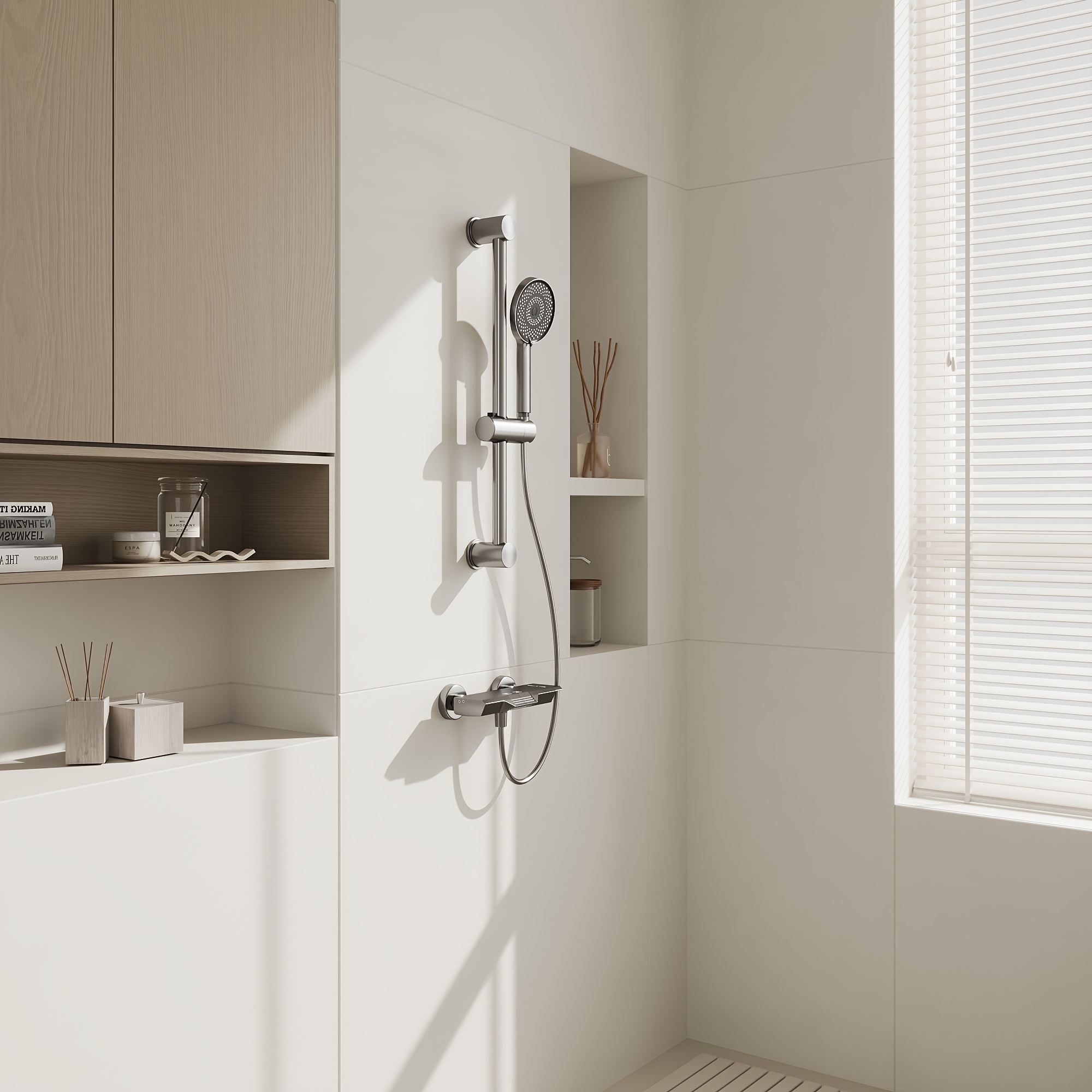 Bathroom Shower System with Handheld And Water Fall Tub Spout, Gray Shower Set, Shower Faucet Set, Faucet with Cold And Hot Water Mixer