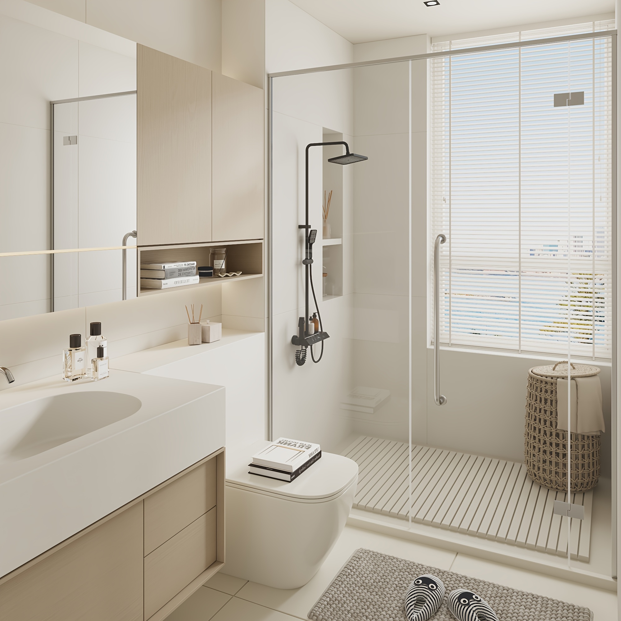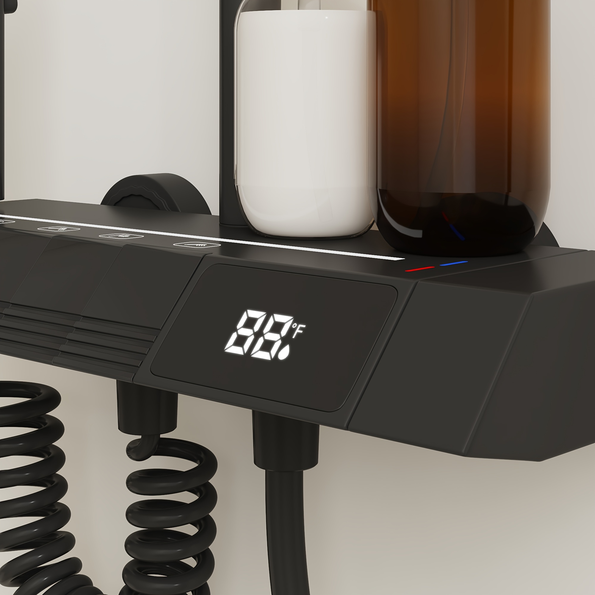 Shower Head Black, 4-In-1 Shower System, with LED Temperature Display, Ceramic Valve And Multi-Function Spray, Shower Head with Easy-clean Silicone Nozzles